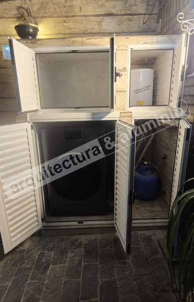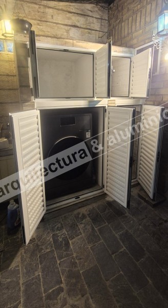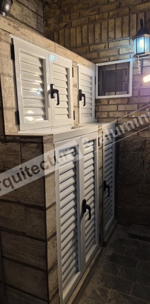 Se colocaron batientes con celosía (ventilación). Todas en línea Probba – aluminio blanco. En un “nicho” doble batiente, en el otro batiente simple. Todas con pestillo y cerradura. Altura - 62 cms.#326 Techo en vivienda Edificio en Pocitos