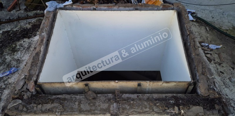 Se realizó cambio – aluminio color blanco. Corrediza de 4 hojas –línea Probba. Se debió colocar tubo superior. Ver el antes y el después.#351 Cambio de claraboya Prado