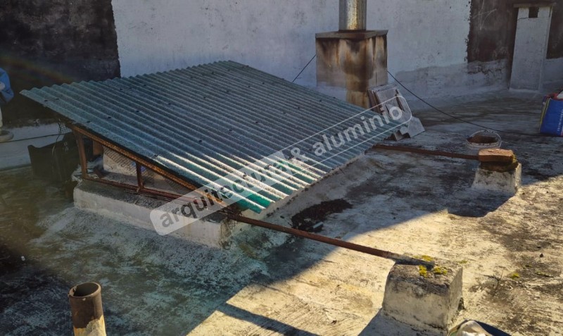 Retiro de claraboya existente en hierro y vidrio por aluminio y policarbonato.#27 Cerramiento de piscina Balneario